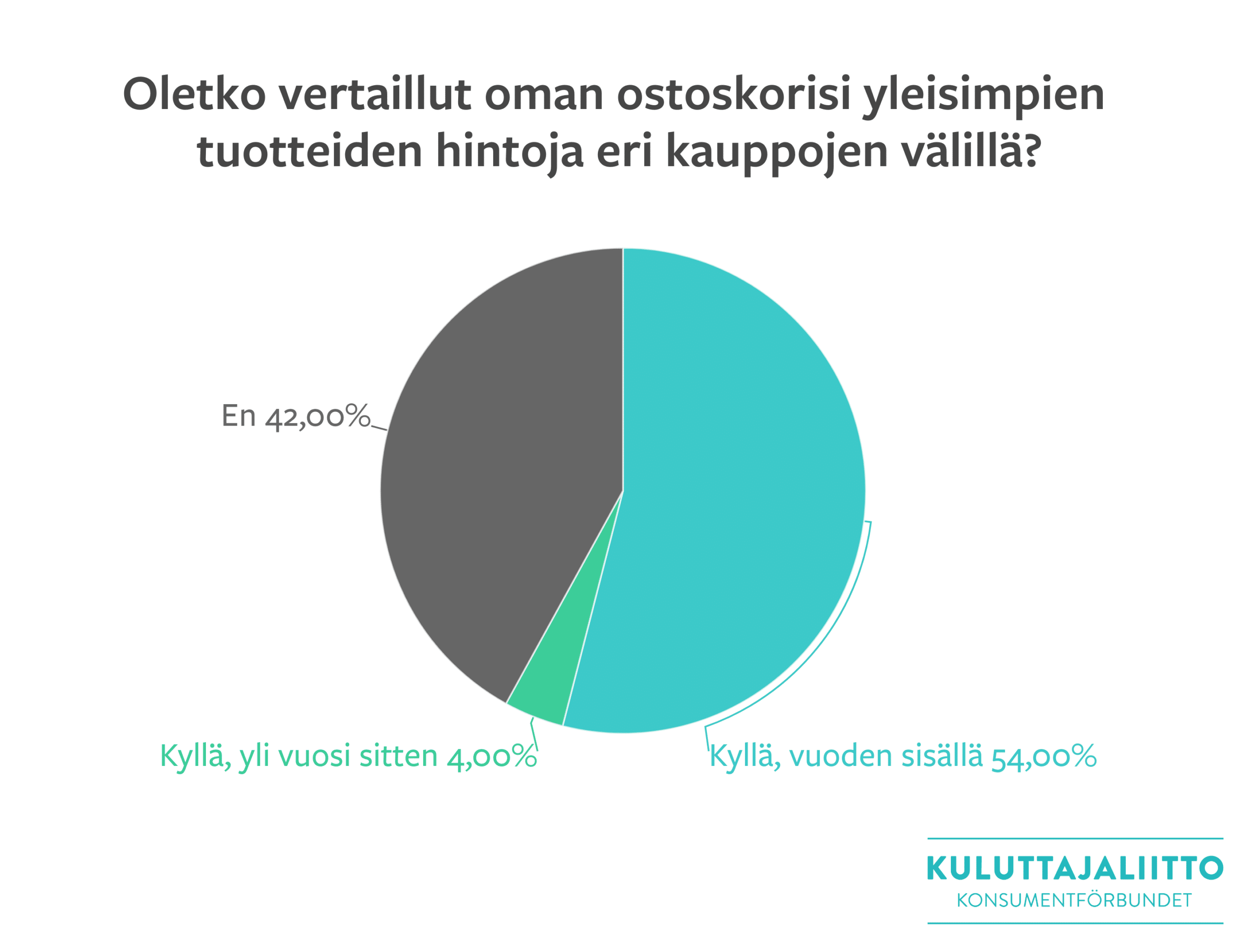 Kuluttajaliiton selvityksen mukaan 54 % vastaajista oli vertaillut oman ostoskorinsa yleisimpien tuotteiden hintoja eri kauppojen välillä. Yhteensä 58 % kertoi vertailleensa hintoja joskus. 42 % vastaajista ei ollut vertaillut oman ostoskorinsa sisältämien tuotteiden hintoja.