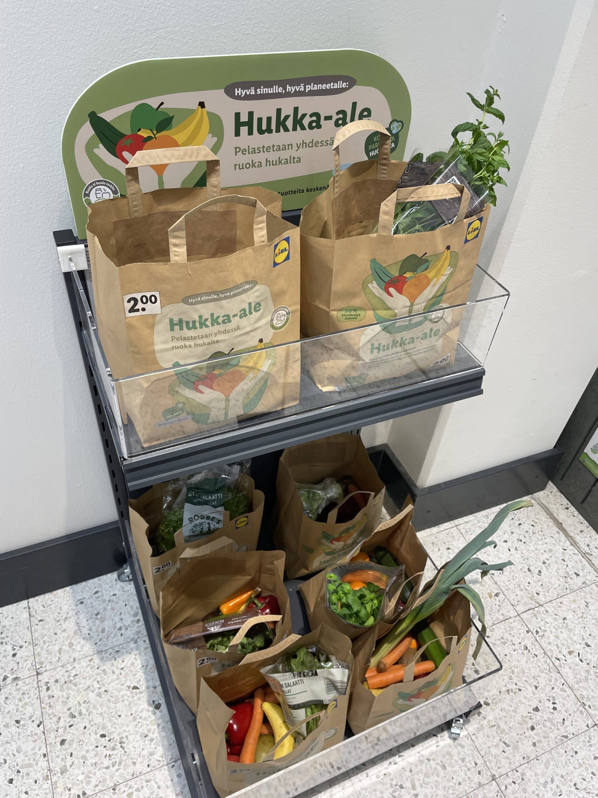 Hävikin minimointia mietitään meillä monissa vaiheissa, ja se on keskeistä jo esimerkiksi tuotteiden tilausmäärien kohdalla. Yksi asiakkaille näkyvä toimi on vuonna 2019 kehittämämme hukka-ale, jossa myymme hieman kolhiintuneita, mutta täysin syömäkelpoisia vihanneksia ja hedelmiä edulliseen hintaan. Näin tuotteet saadaan vielä käyttöön, ja tuemme samalla asiakkaiden mahdollisuuksia lisätä kasviksia ruokavalioonsa. Hukka-ale on saanut suuren suosion, ja hävikkihevikassit myydään aina nopeasti loppuun. Hukka-ale on sittemmin laajentunut myös paistopisteen tuotteisiin.
