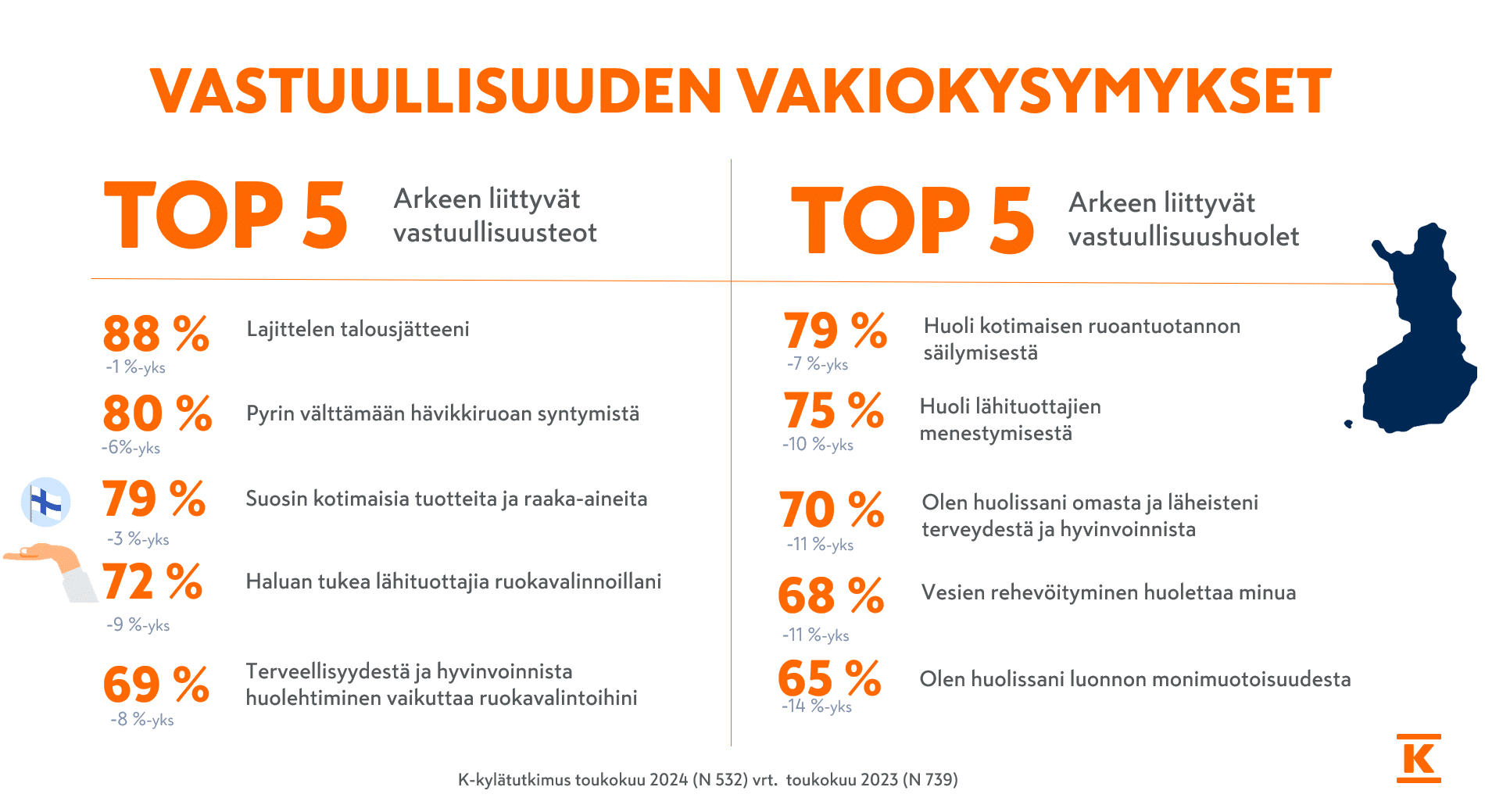 - K-ryhmän kyselytutkimus toukokuu 2024. N=532