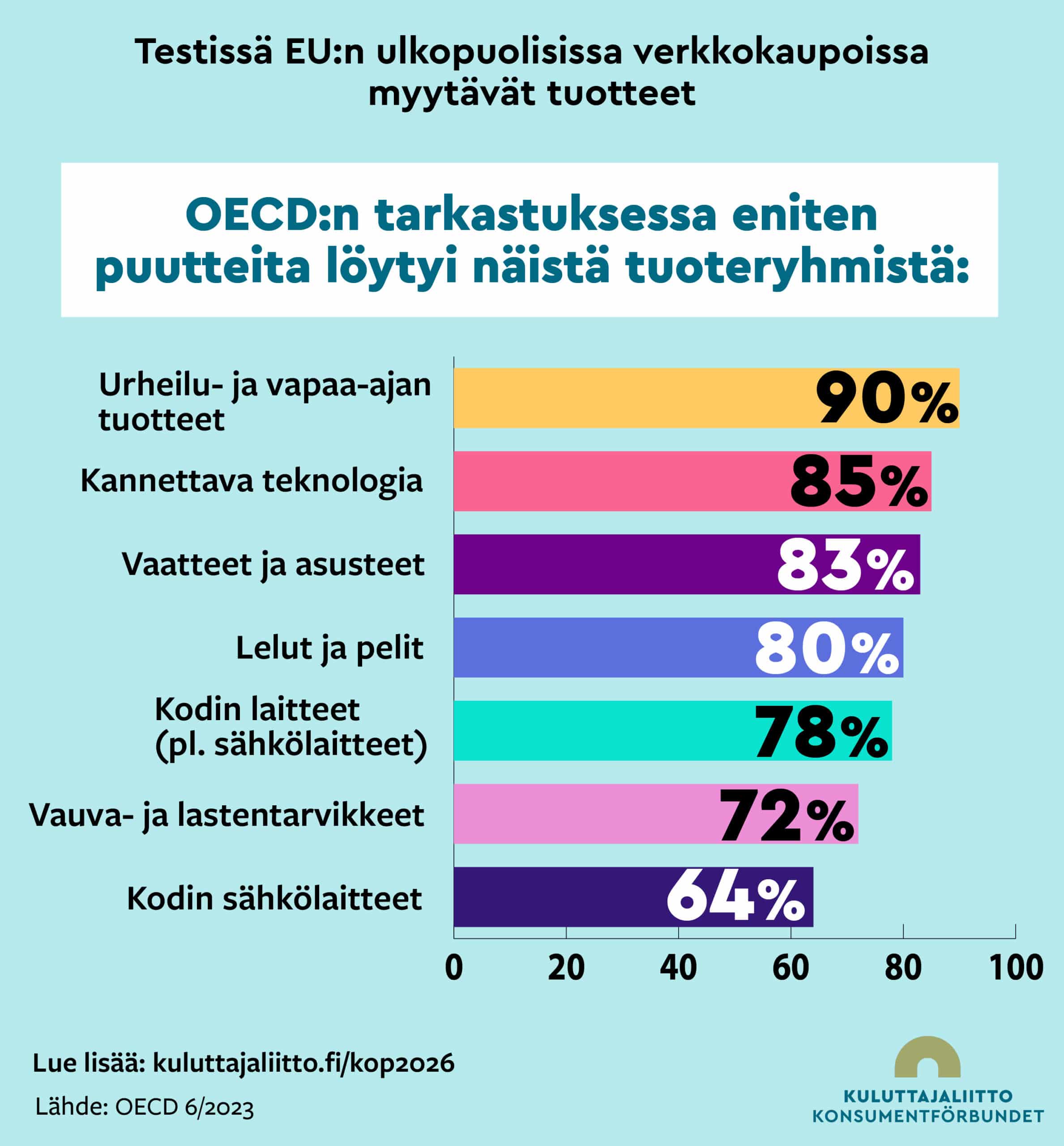 Tuoteturvallisuuden merkitys korostuu kansainvälisen ja rajat ylittävän vilkkaan verkkokaupan aikakaudella. 15.3.2026 vietetään kansainvälistä kuluttajan oikeuksien päivää. Globaalina teemana on turvalliset tuotteet, jotka lisäävät kuluttajien luottamusta markkinoihin. Kuluttajaliiton somekampanjassa tarkastellaan Euroopan ulkopuolisista verkkokaupoista tilattujen tuotteiden turvallisuutta.