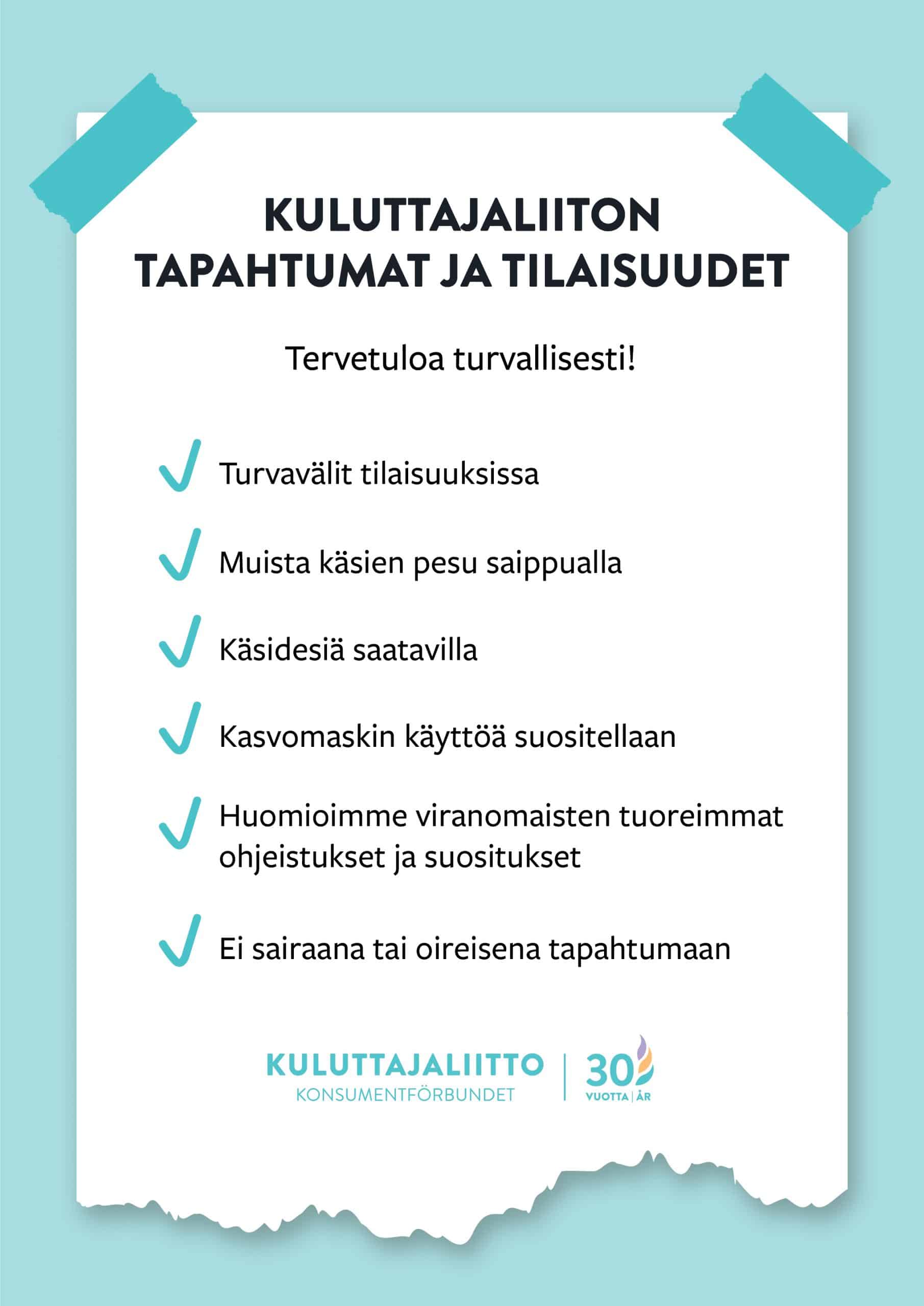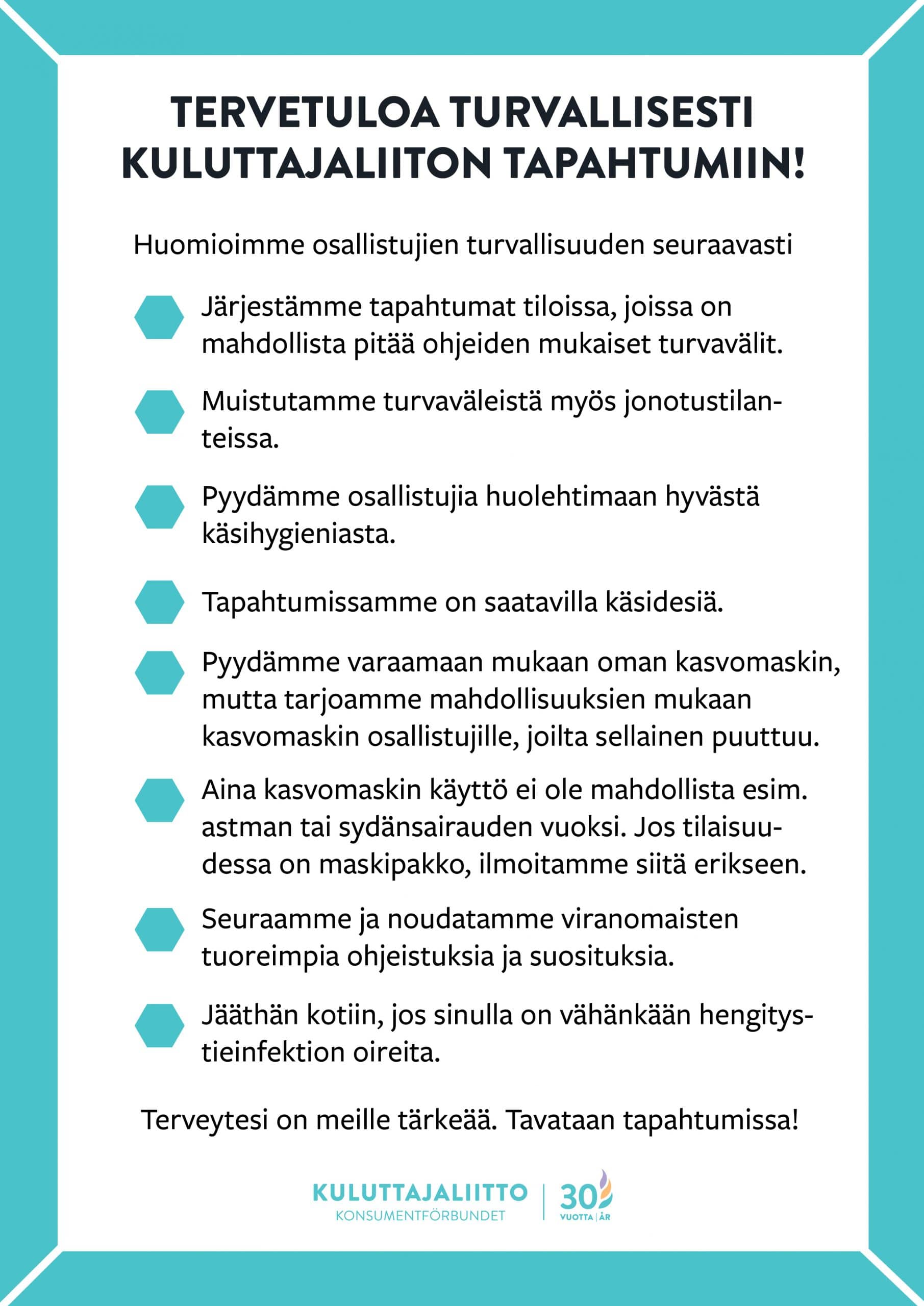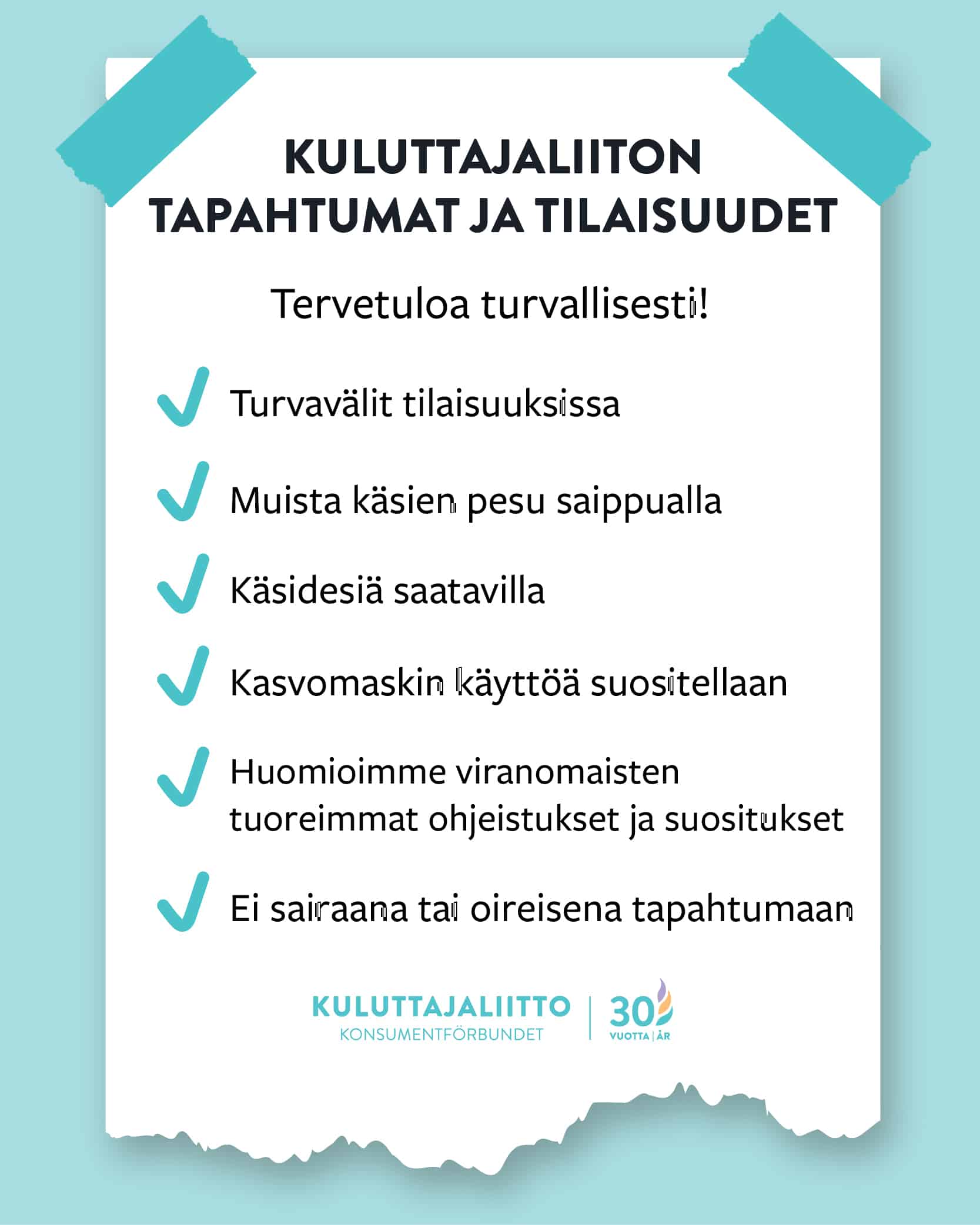Tervetuloa turvallisesti Kuluttajaliiton tapahtumiin!