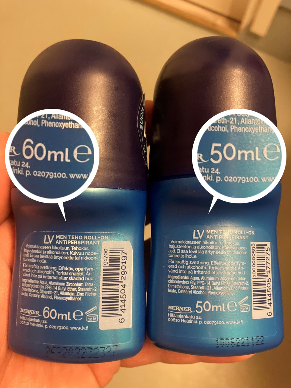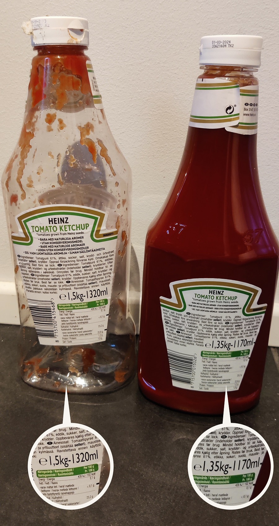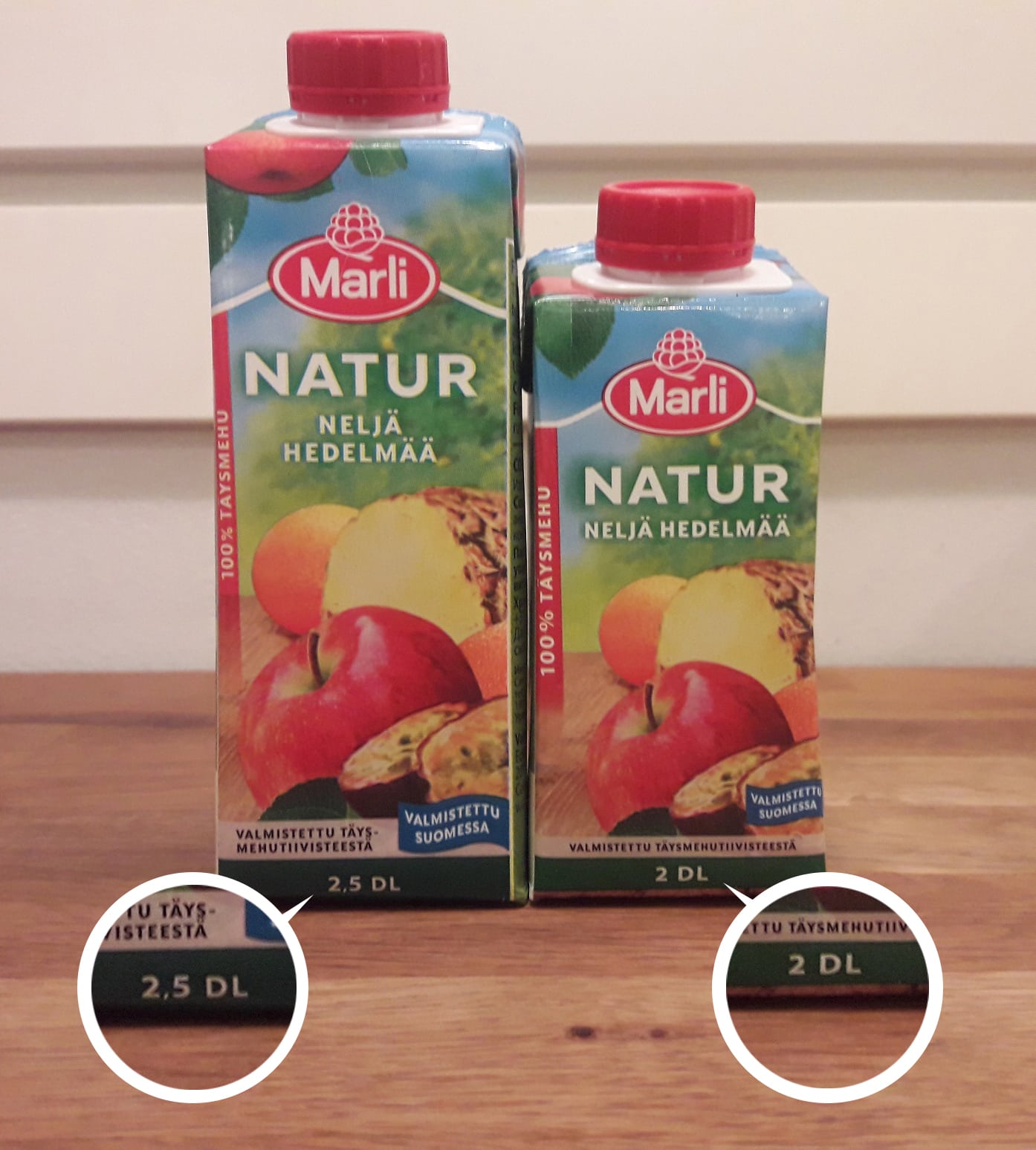 Kuluttajien kuvia pienentyneistä tuotteista