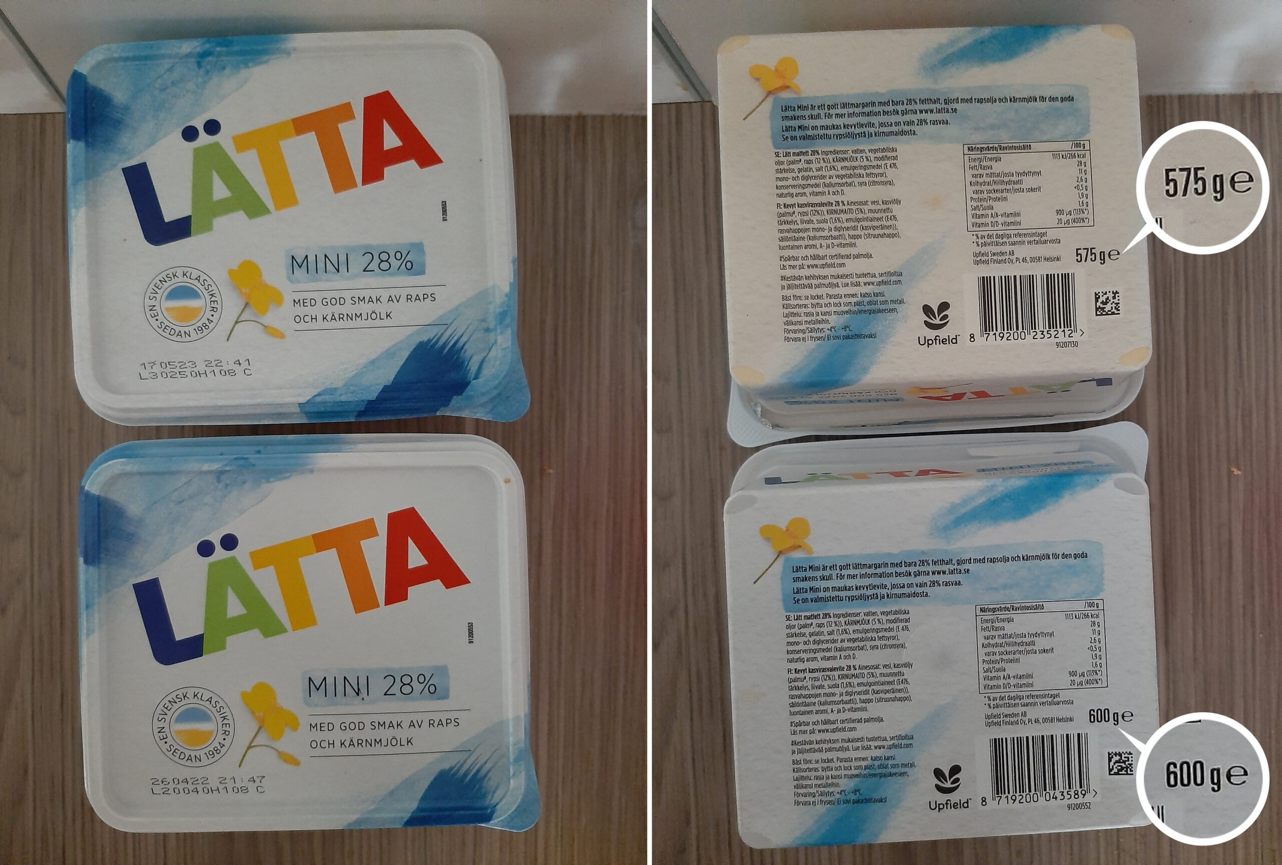 Alla esitellään kuluttajien havaintoja kooltaan muuttuneista pakkauksista. Tuotteiden osalta ei ole saatavilla hintatietoja, joten ei voida tietää, onko juuri niiden kohdalla kyse shrinkflaatiosta. Shrinkflaatiosta puhutaan yleisesti silloin, kun kuluttaja saa vähemmän tuotetta samalla hinnalla. Alla esiteltyjen kuvien tarkoituksena on havainnollistaa pakkaus- tai sisältökokojen muutoksia.