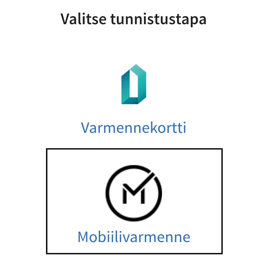 - Valitse verkkopalvelussa tunnistautumistavaksi mobiilivarmenne (ks. kuva alla).