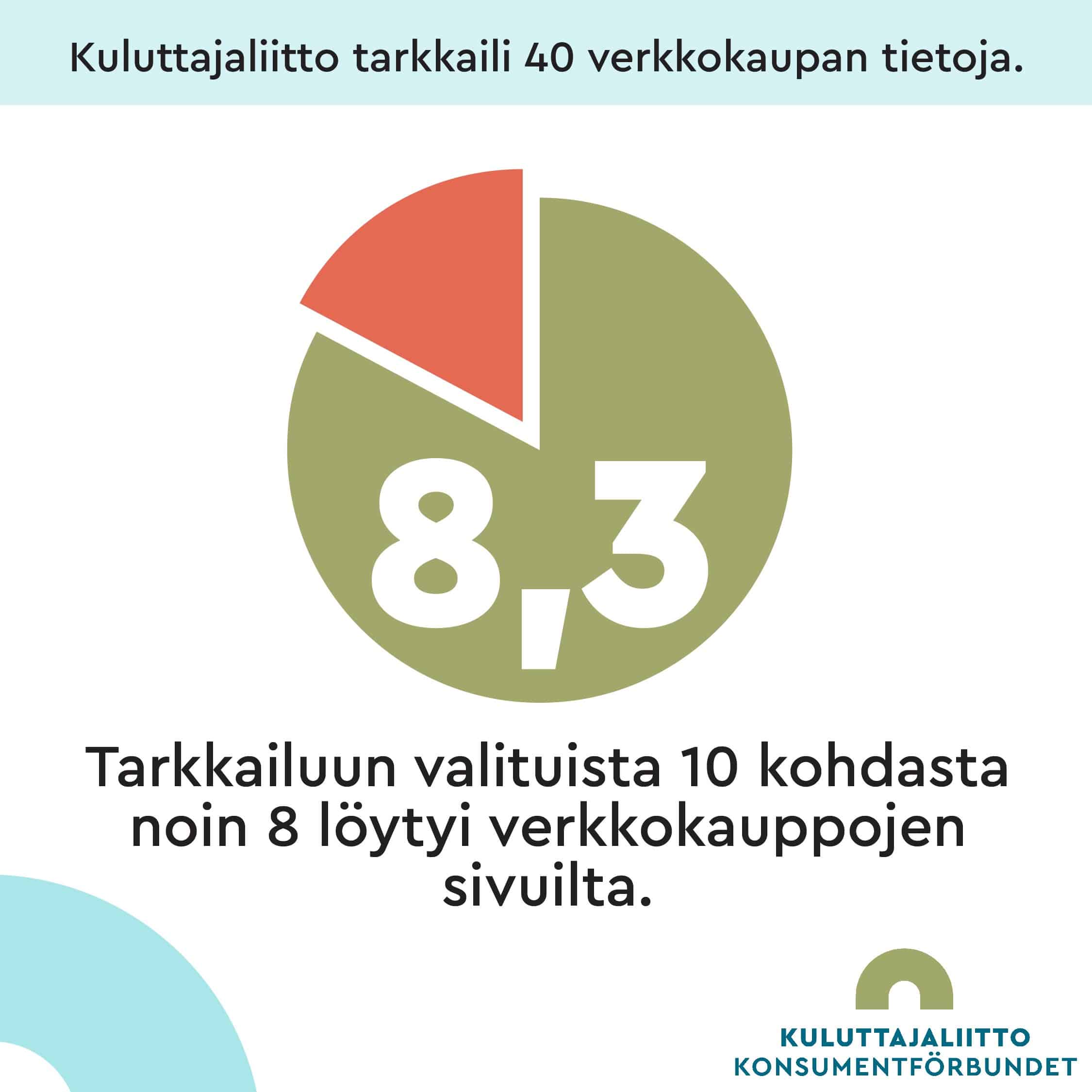 Kun tarkastuspisteitä pystyi saamaan enintään kymmenen, verkkokauppojen keskiarvoksi muodostui 8,3.