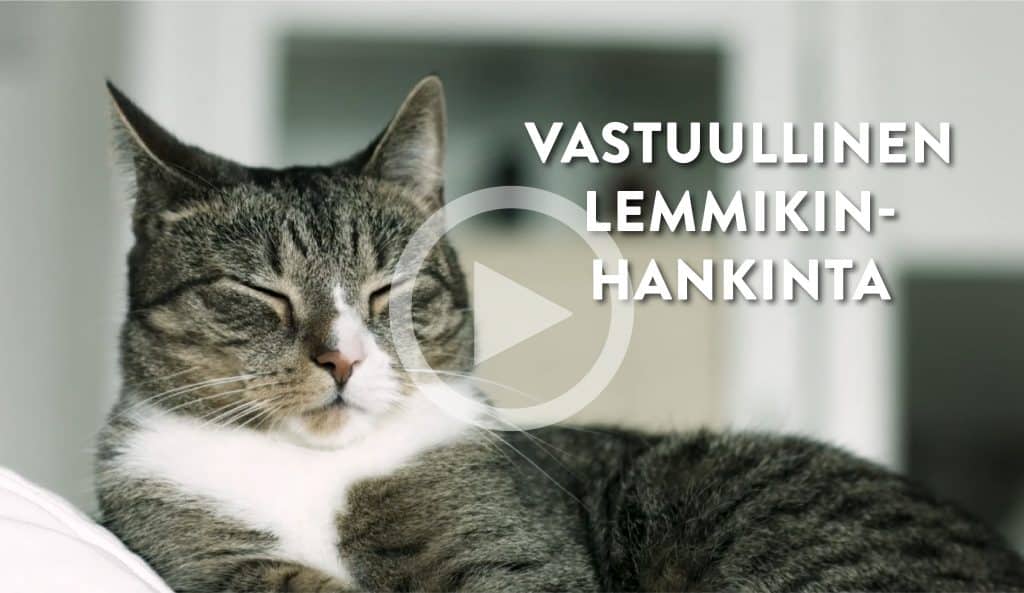 Moniin perheisiin kuuluu ihmisten lisäksi myös eläimiä. Eläimistä on paljon iloa ja hyötyä, mutta eläimen pitämiseen liittyy myös suuri vastuu sen hyvinvoinnista. ”Vastuullinen lemmikinhankinta” -video käsittelee eläimen hankkimista lemmikiksi ja keskittyy kissaan ja koiraan. Videossa käsitellään, mitä pitää huomioida ennen lemmikin hankintaa sekä mistä ja miten lemmikin hankkii. Keskeisiä lähtökohtia ovat vastuullinen eläimenpito ja kuluttajansuoja.